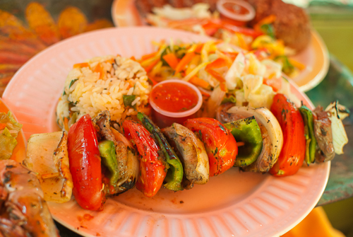 Como carne asada, chorizos, conejo, una variedad de rana asada, pupusas y todos los platillos gourmet que se imagine aquí están en el festival.